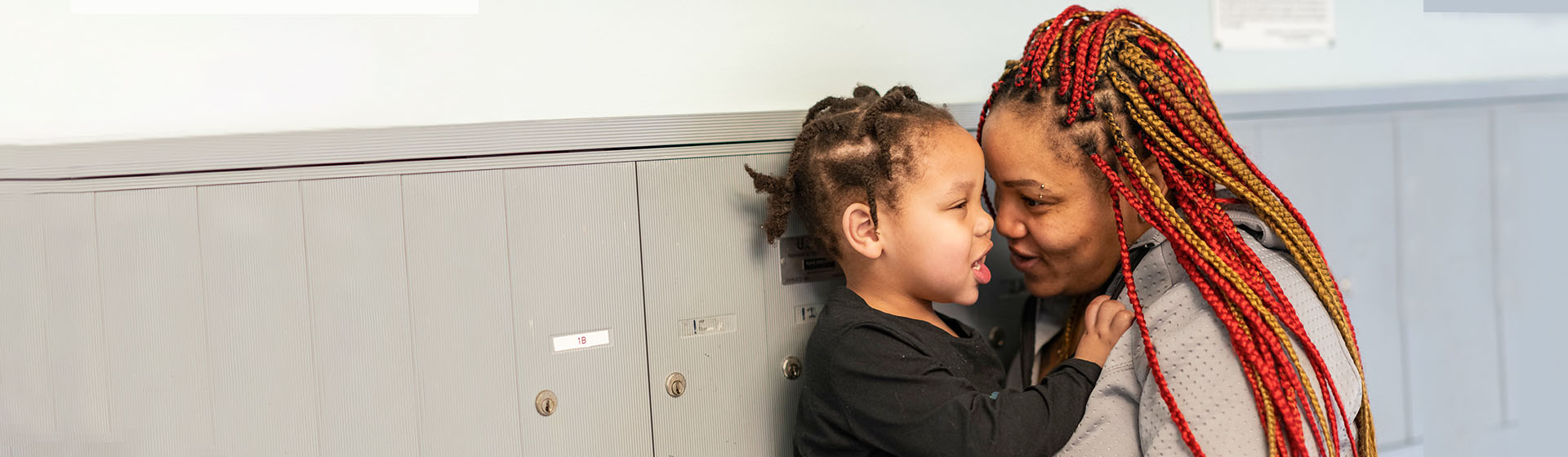 Mother hugging her young child